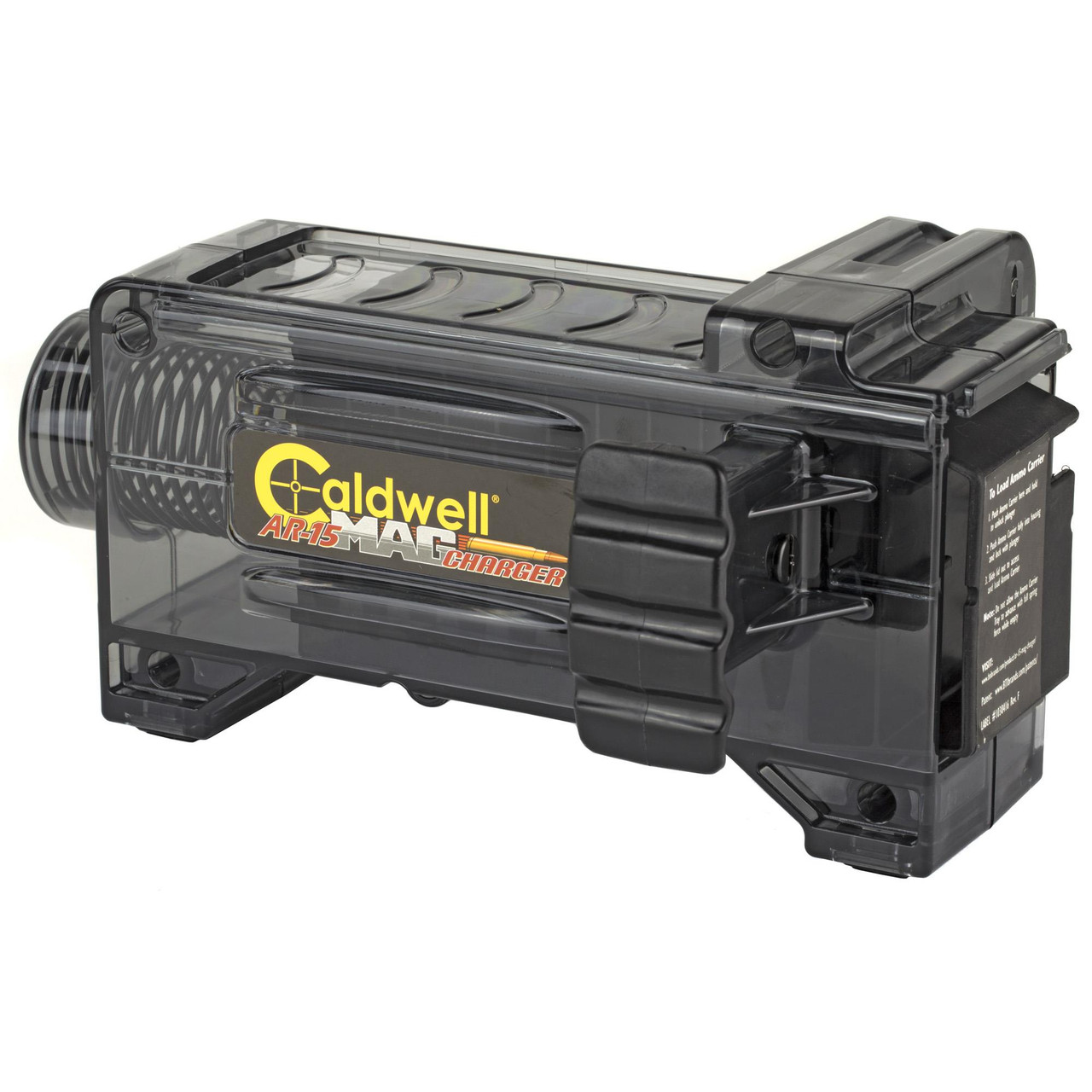 Caldwell’s AR-15 Mag Charger is designed to accept loaded rounds directly from any common 50-round ammo manufacturer box or from aftermarket 50-round plastic storage boxes. Align the bullet tips and dump into the Mag Charger. Once filled, insert any AR magazine into the Mag Charger just as you would into a rifle. Each stroke loads 5 rounds as the spring-loaded ammo carrier automatically advances aligning the next five rounds until magazine is fully loaded. The entire process of filling the Mag Charger and loading all 50 rounds into two magazines takes less than 15 seconds. The AR-15 Mag Charger includes an Ammo Transfer Tray to invert ammo positioned in boxes with the bullet tips down or to stage bulk ammo. Highly durable poly-carbonate construction, the Mag Charger is compatible with .223, 5.56 and .204 ammo.