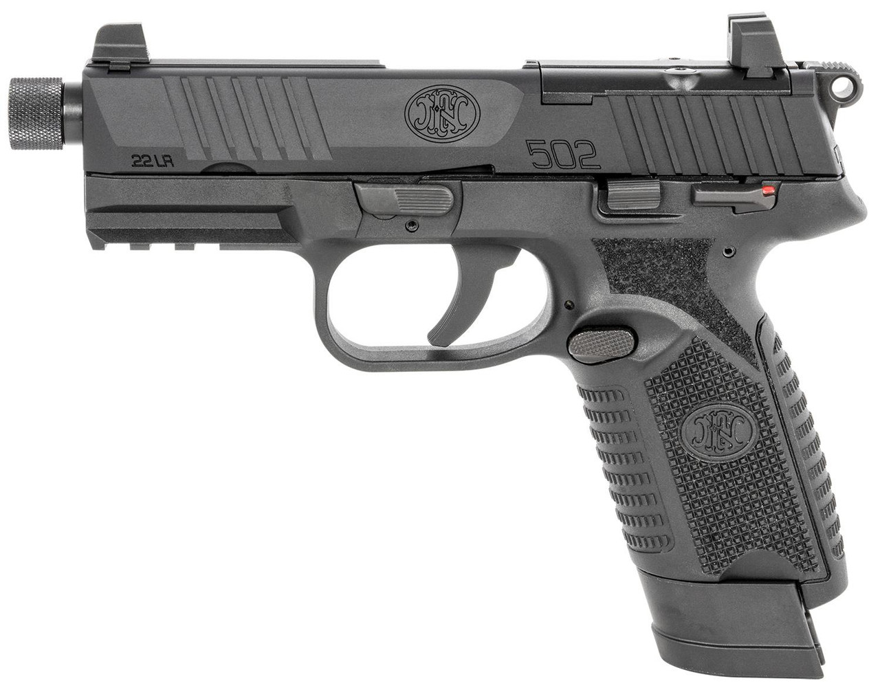 The FN 502 Tactical isn’t just the first .22 LR from FN, its the industry’s first slide-mounted, optics-ready rimfire handgun. Designed for maximum fun, FNs hammer-fired .22 LR delivers more accuracy and versatility than any other rimfire. Mounting a favorite red dot optic and cycling a wide range of .22 LR ammo makes a low-cost range day a high-end experience. Inspired by FN’s patented Low-Profile Optics Mounting System, the FN 502 Tactical offers unmatched sighting options and co-witness front and rear sights align perfectly with your dot. The superior ergonomics, proven balance and ambidextrous controls, all a nod to the FN 502’s bigger brother, the FN 509, make it perfect for high round count training sessions. Like a robust target-style rimfire pistol, the design of the FN 502 Tactical delivers faster, more accurate shots on target from a modern, optics-ready tactical pistol.