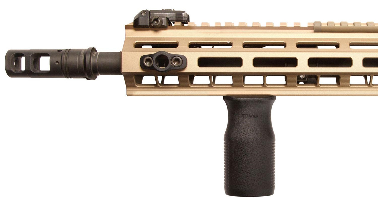 The M-LOK MVG is a light weight vertical foregrip that attaches directly to M-LOK compatible hand guards and forends with no additional Picatinny rails required. Made from high quality polymer, the M-LOK MVG uses the new Magpul TSP texture for positive control. All hardware necessary for attachment directly to M-LOK Slots on either aluminum or polymer hand guards and forends is included.
