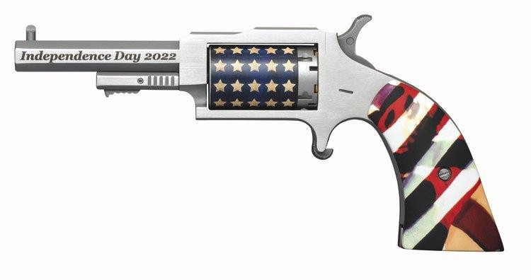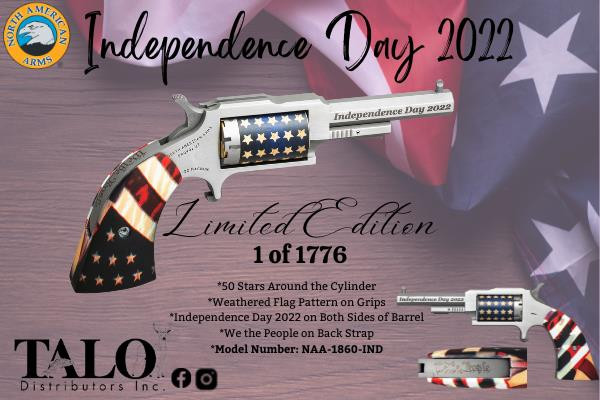 Independence Day 2022 inscribed on both sides of octagon barrel, We The People inscribed on backstrap, blue cylinder with stars, 1776 total units with special serial numbers, flag dipped grips. Chambered in .22 Magnum with a 5 round capacity.