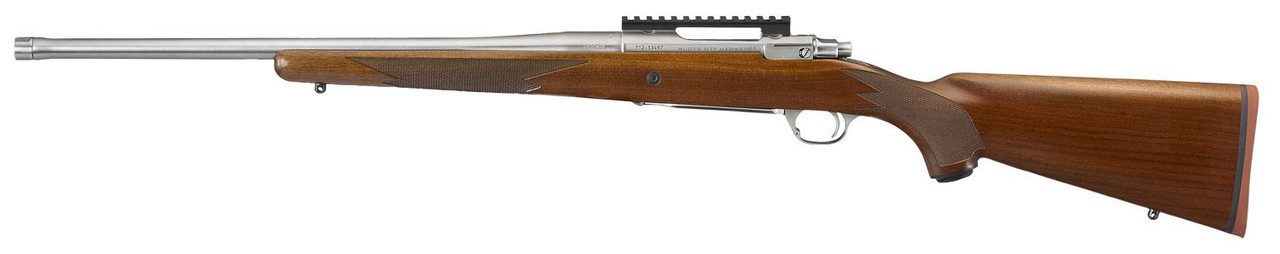 This model of the Hawkeye Hunter features a Mauser-type controlled round feed extractor and fixed blade-type ejector that positively ejects empty cases as the bolt is moved fully rearward. It also features an American Walnut Stock, 20 MOA Picatinny rail, three-position safety, Free-floated, cold hammer-forged stainless steel barrel and an LC6 trigger. Studs are included for sling swivel mounting.