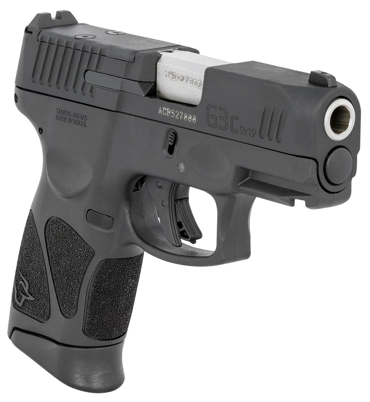 The Taurus G3c T.O.R.O. builds on the foundation of personal defense/EDC handguns while advancing function, reliability and durability. Features an upgraded Gen 3 flat trigger system, Teflon coating on operational controls, drift adjustable serrated rear sight (Dovetail cut compatible with most aftermarket sights), Picatinny rail, scallops in magazine extension and loaded chamber indicator window. The T.O.R.O. comes with a factory -installed slide cover, four different adapter plates to mount a red dot sight on the side and three 12rd magazines.